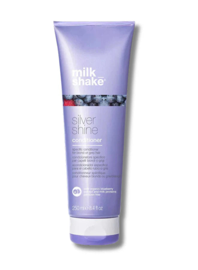 بلسم ميلك شيك سيلفر شاين هو بلسم مُقوّي ومُغذّي للشعر، مُصمّم خصيصاً للشعر الأشقر، الرمادي، أو الفاتح. مُركّب بمزيج فريد من أصباغ بنفسجية ، مستخلصات التوت العضوي ، وبروتينات الحليب ، يُساعد على إزالة اللون الأصفر أو النحاسي، مع ترطيب الشعر بعمق وتنعيمه. مثالي للحفاظ على لون رائع وحيوي، مع تعزيز لمعانه وسهولة تصفيفه.
